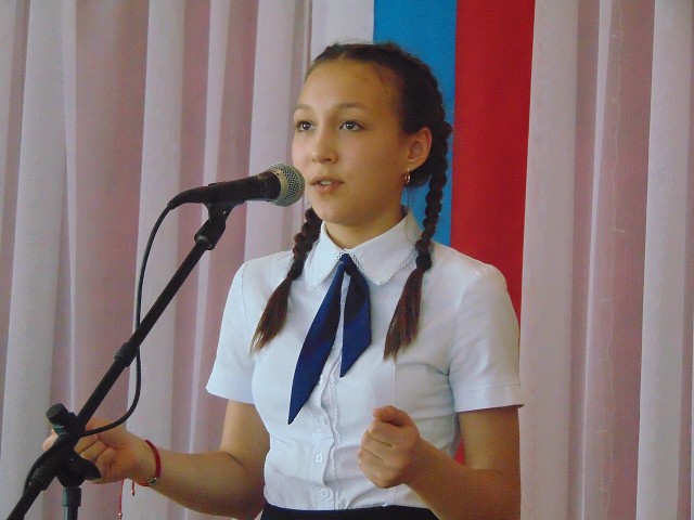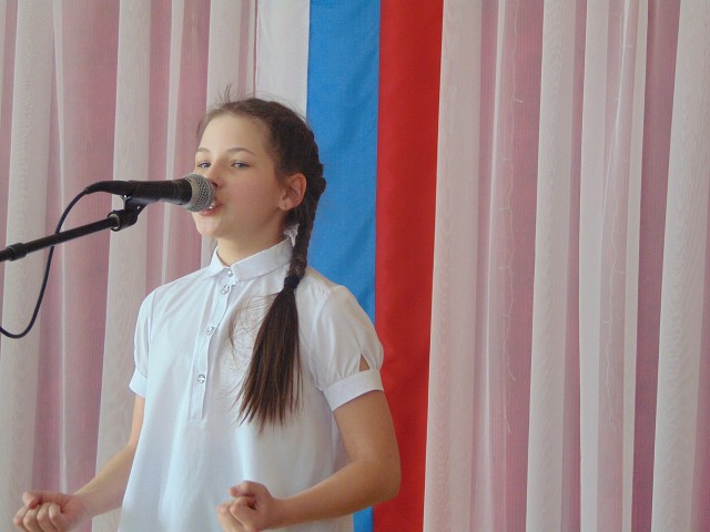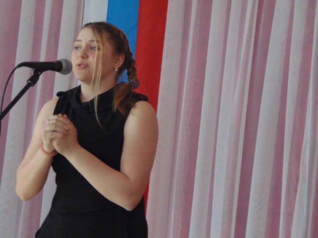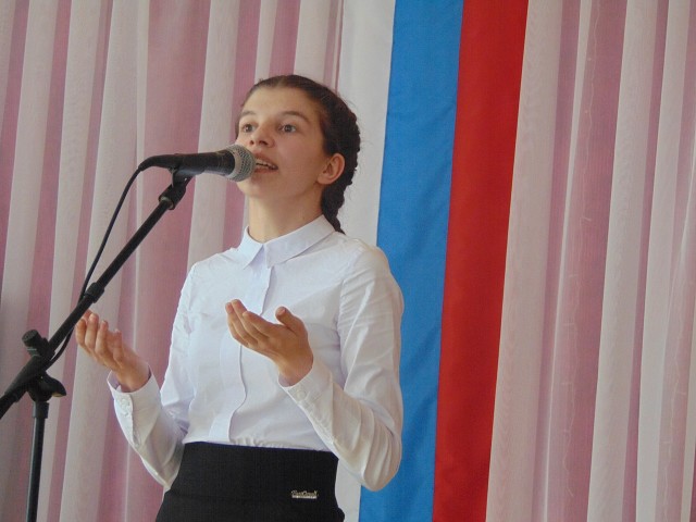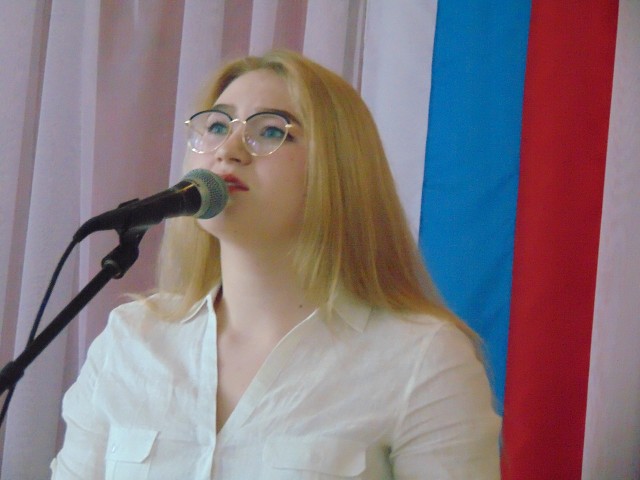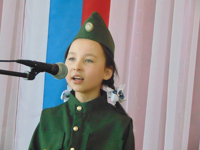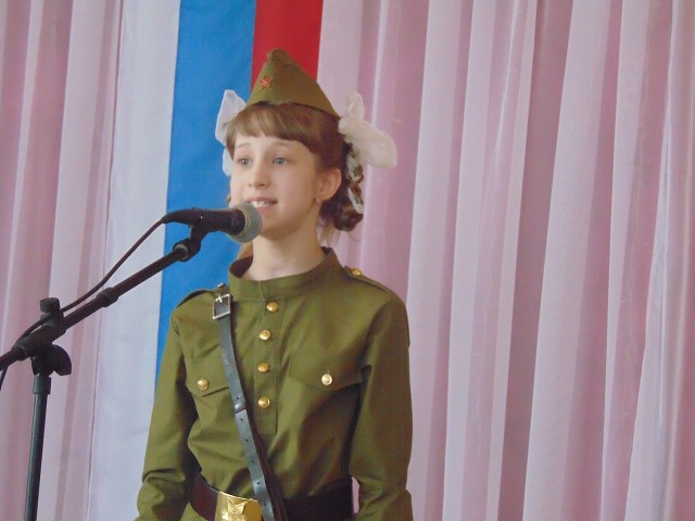 Зал был полон участников и их руководителей. Конкурсанты читали стихи и исполняли песни о военном времени.